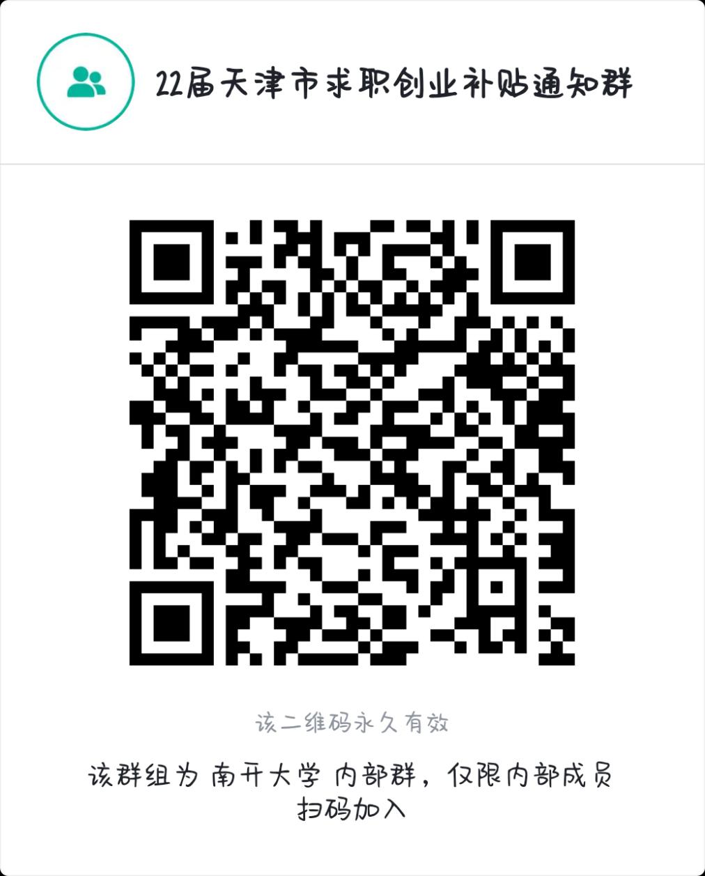 请申请22届天津市求职创业补贴的同学扫码加入飞书群,今后我们将对申请该补贴的同学进行就业帮扶。